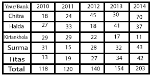 An overall picture of the amount of loan disbursement of Five banks for the last five years is as follow: (Amount in crores of Taka)In which bank disbursement of loans was more than 25 percent of all in 2014